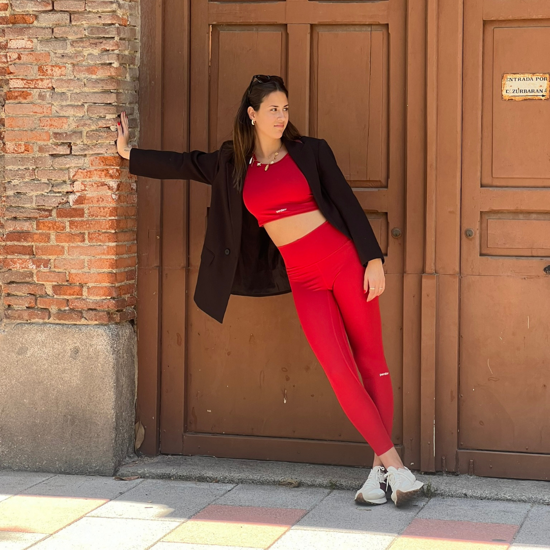 Al ser una prenda muy elástica de 4 direcciones la prenda es muy versátil y se adapta a todo tipo de cuerpos. La modelo lleva una S.