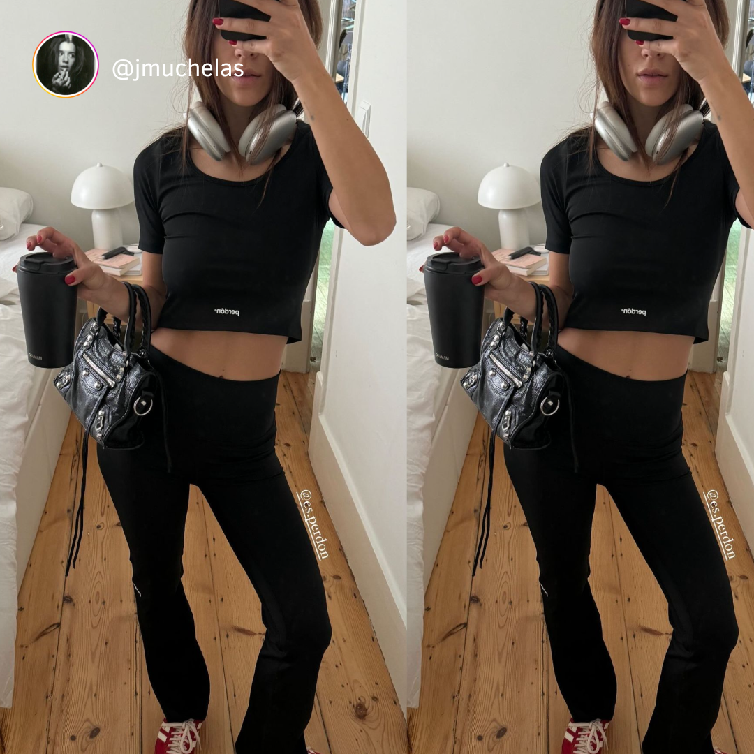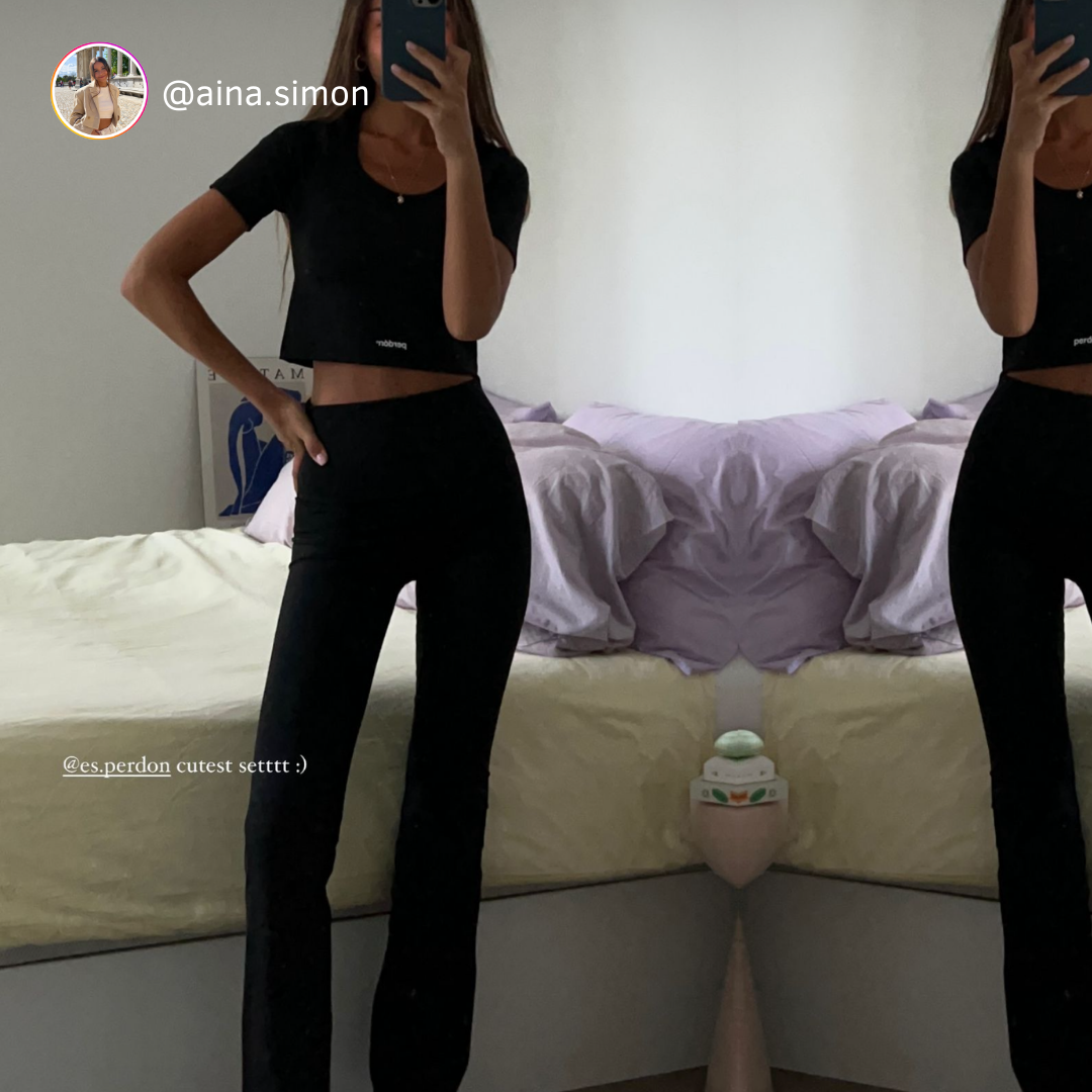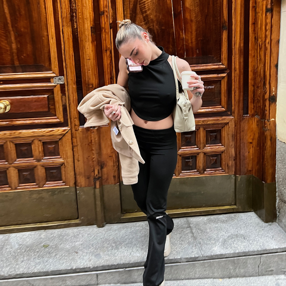 Al ser una prenda muy elástica de 4 direcciones la prenda es muy versátil y se adapta a todo tipo de cuerpos. La modelo lleva una S.